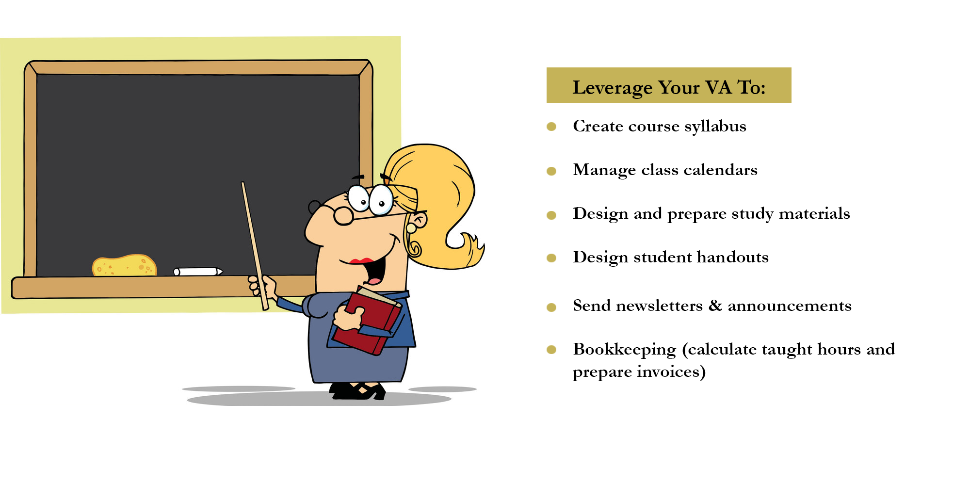 If you’re a teacher, teaching your students, analyzing new teaching pedagogies are your duties. Use your VAs to assist you with new digital teaching methods.